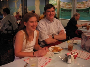 Carla and Paul, in a candid moment between the appetizer ("apps," as our server called them) and the main course.