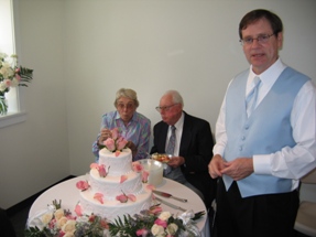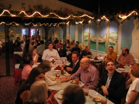 At the head of the table, my cousin Paul takes a break from greeting the guests.