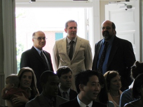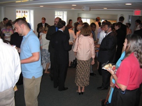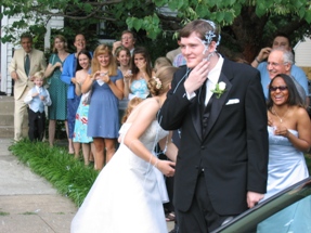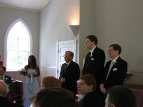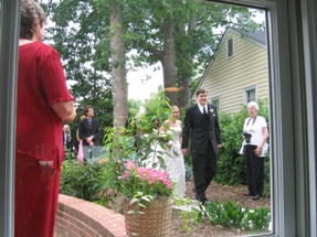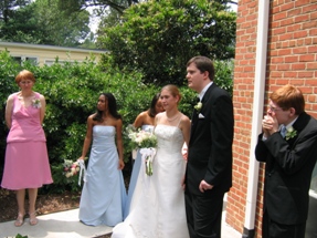 Shh... the ceremony is beginning. I didn't get many pictures of the actual event, but I know the wedding photographer did. Paul's cousin Mike also got a fair number of good pictures during the ceremony, and has posted them on his website. You should check them out, they're much better than mine. And far more punctual as well.