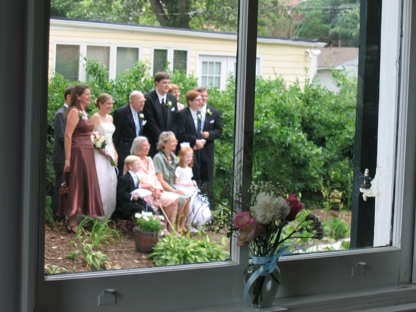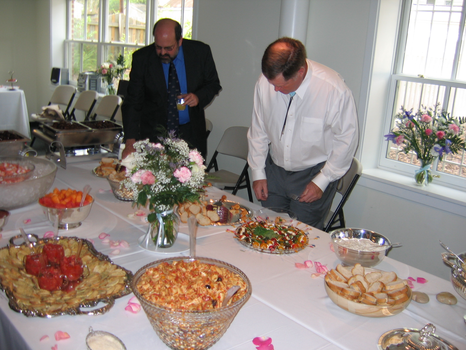 While we were all pigging out inside, the wedding party was stuck being photographed in every possible combination from every conceivable angle. Naturally, they were out there for a while.