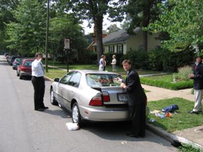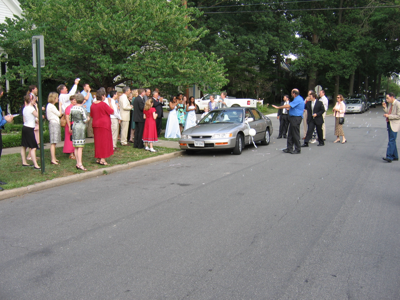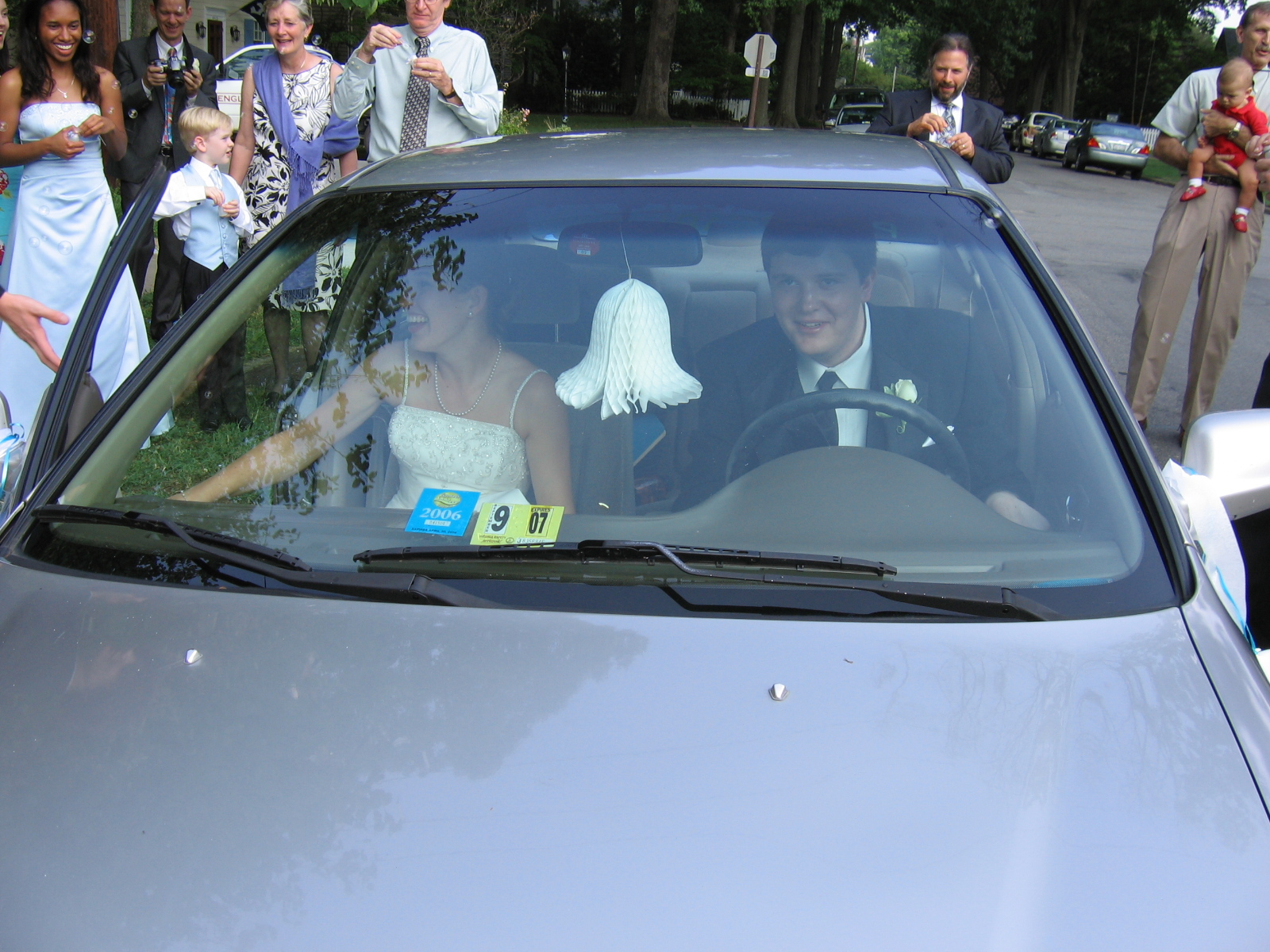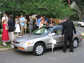 It was at about this time that a few of my other cousins snuck out to "decorate" the groom's vehicle. Who was it? I'm not telling, and neither will these pictures, because you definitely can't just go back to the other pictures and figure out from their clothing who everybody is, no sir.