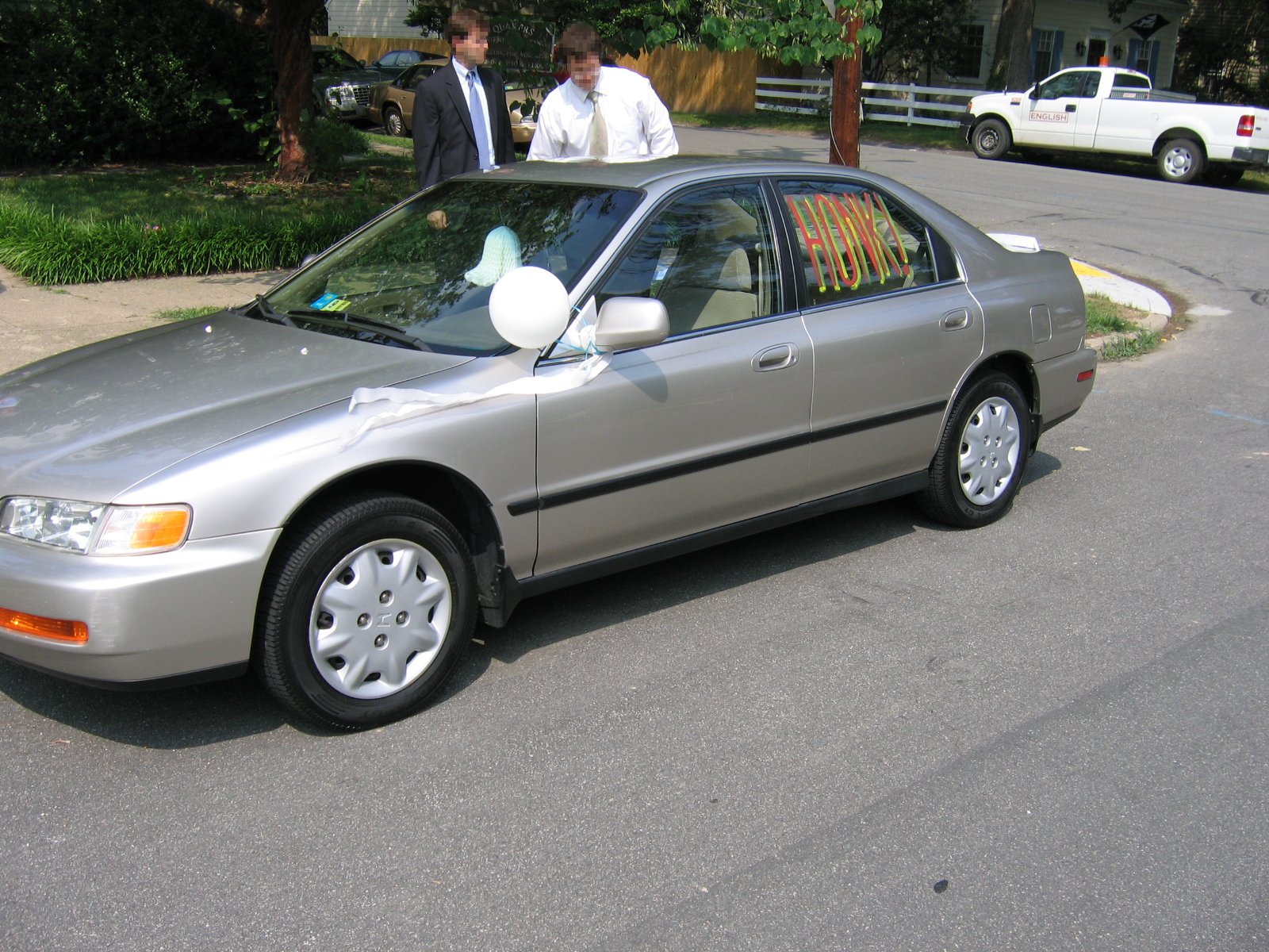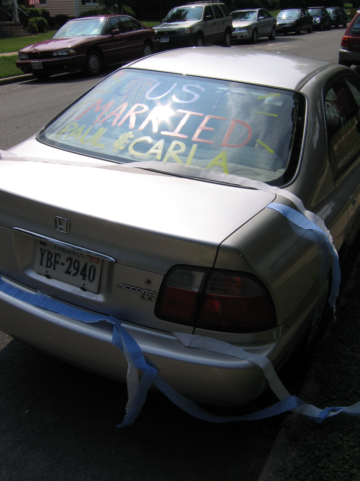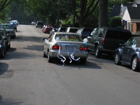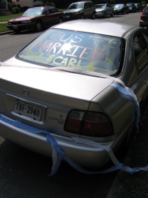 No pranked car would be complete without "Just Married" written on the back.