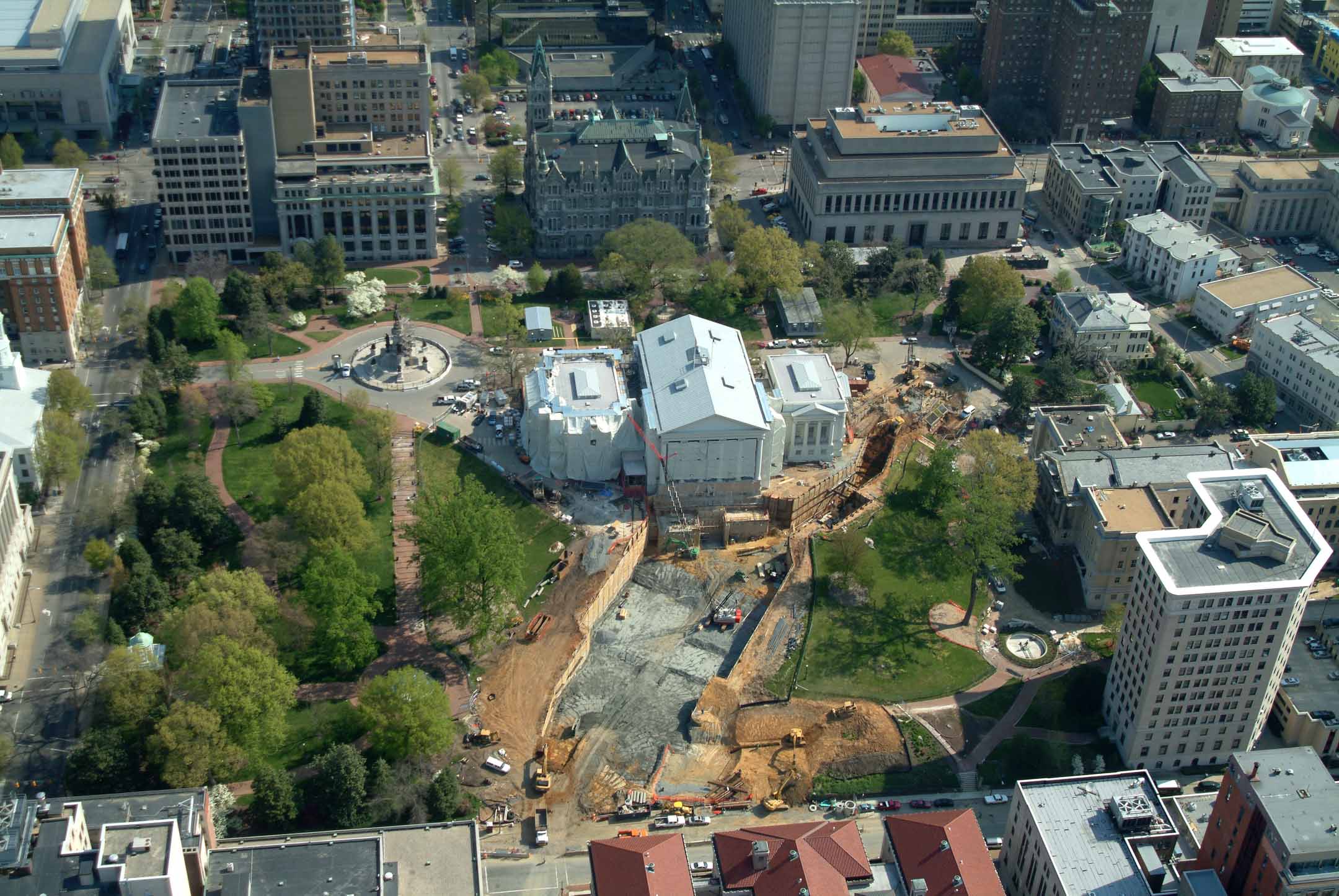 The last week I was in town the company arranged this tour for all of the interns in the company. Even the Blacksburg people drove up to Richmond for the day. We got to take a tour of the Virginia State Capitol, a project our company did a lot of work on a few years back. This here's a picture from the local paper of the project under construction.