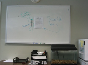 I love doodling on the whiteboard. Man, I was bored that day. I kind of stopped getting assignments my last week there.